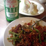 這種100起的泰式料理餐館前一陣子如雨後春筍般冒出一大堆, 在SOGO頂好商圈這附近, 大概就屬SOGO後面那一間最早推出這種型態的那間新曼谷的生意最佳吧. 最近在市民大道附近也新開一間如此型態的餐館-金沙塔雲泰料理, 秉持著嚐鮮的冒險犯難精神, 雖然昨天才因此讓我跟同事在內科附...